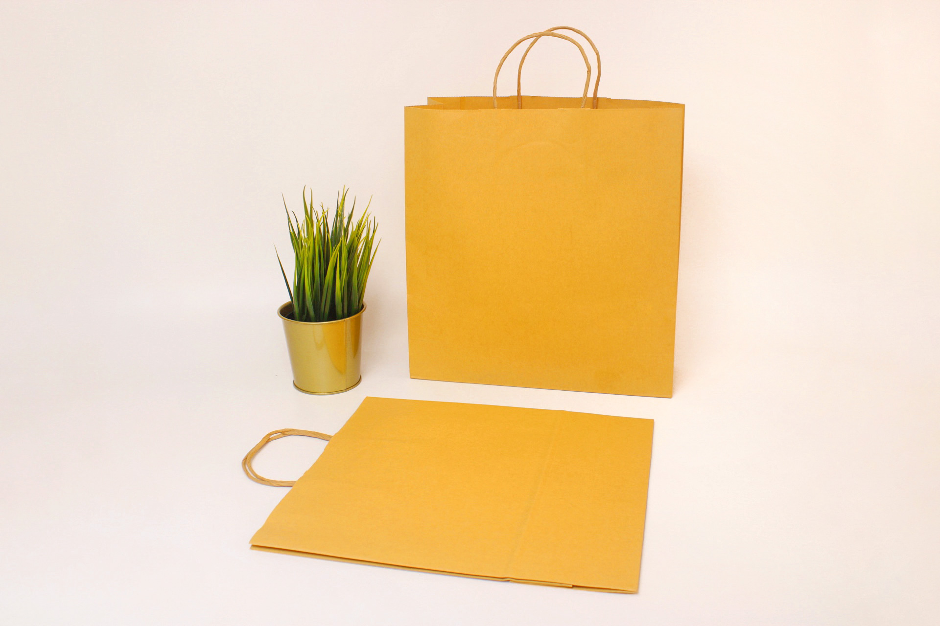 Handle paper bags, also known as Kraft paper shopping bags with twisted paper rope